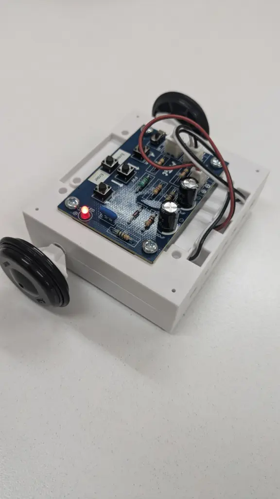 ロボには、前や左右のボタンがあり、ボタンを5回押すごとに1秒動く仕組みになっています。