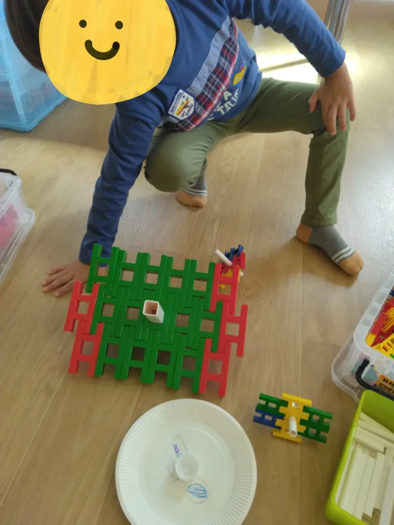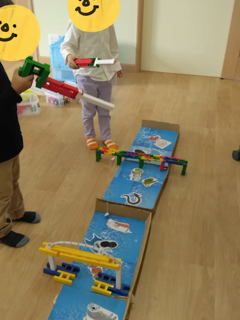 幼児のキンダリークラスは、大きめのブロックを使い、