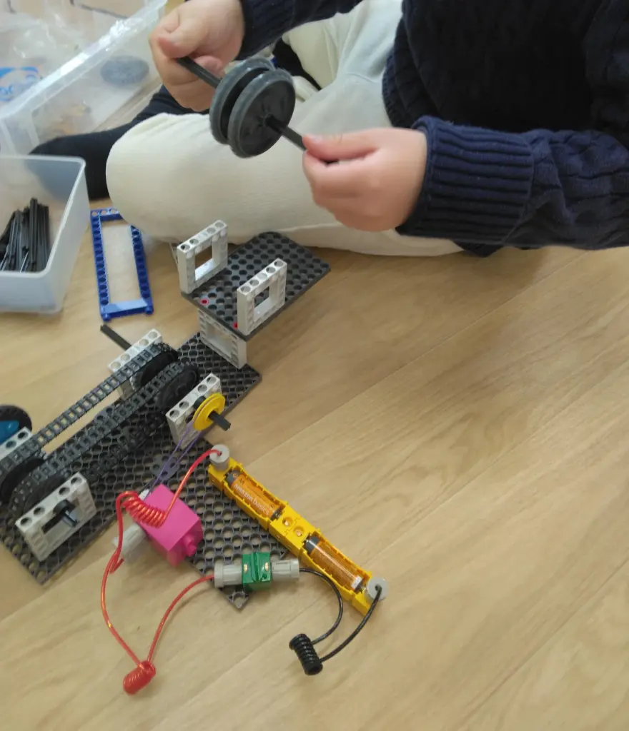 ベーシッククラスでは、ブロック製作を通して、ものの仕組みや原理を体感したり