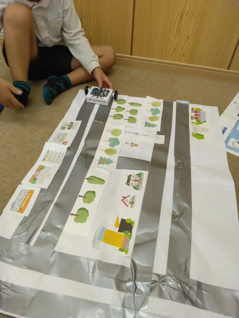 今回は3週にわたり、ボタンでプログラミングをし、ロボットカーを動かすレッスンでした。