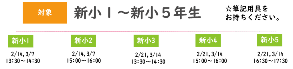 ①先取学習:小学校5年までに、小学校で学習する単元を学習し終えます。そのため、小6時に中学受験に向けた学習がしやすくなります。中学受験をしない場合でも、そのまま先取学習をすることで、将来迎える受験に向けた対応がしやすくなるメリットがあります。小1から少しずつ先取をしてくので、無理なく先取学習が可能です。途中入会の場合は、本クラスに合流する前に、個別指導で未習部分を学習してから合流になりますので、ご安心ください。