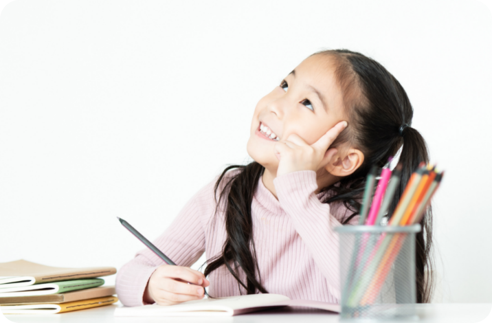 人は、言葉を通して多くのことを学びます。そのため、文字の読み書きや文章の読解が出来るようになると、それまでよりも、得られる知識の量が増え、質も高まります。 森大塾では、幼児期であっても、文字に興味が出てきた段階で、文字の読み書きの学習を始めます。国語の学習が進めば、算数や理社など他分野の学習レベルも高めることができます。